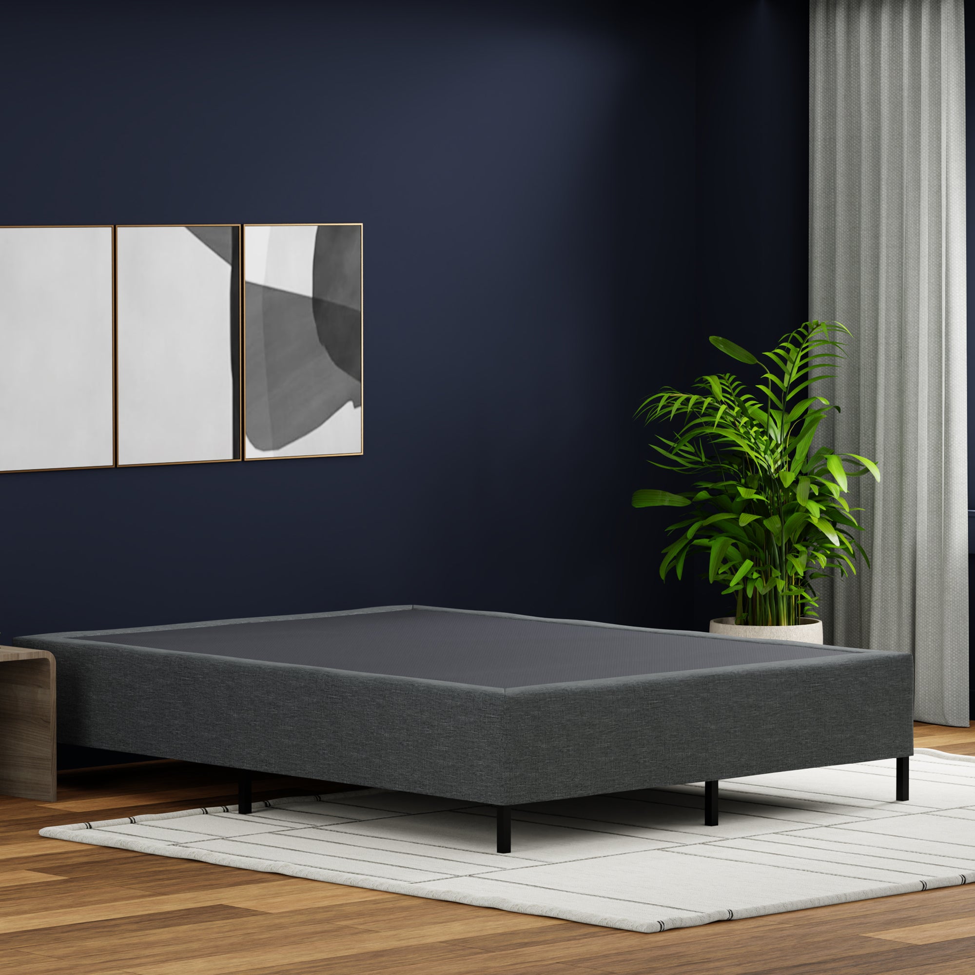 The Essentials metal foundation is designed to be compatible with memory foam, hybrid, and latex mattresses. It offers a simple yet effective way to enhance your bedroom, featuring a decorative fabric cover that complements various interior styles. The installation process is